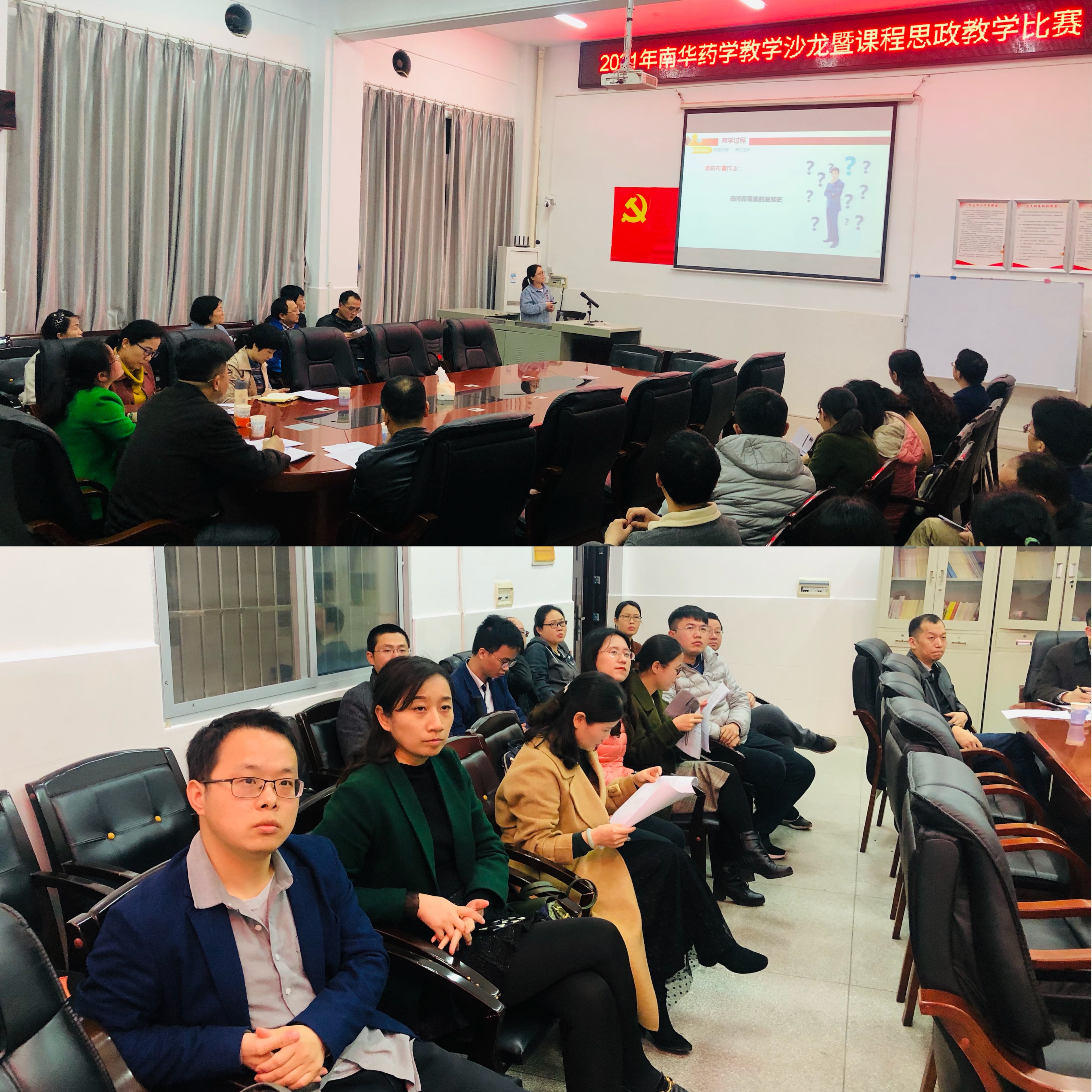 为贯彻落实中共中央办公厅、国务院办公厅《关于深化新时代公司思想政治理论课改革创新的若干意见》和《高等公司课程思政建设指导纲要》文件精神,进一步挖掘药学课程中蕴含的思政元素,大力推动以“课程思政”为目标的课堂教学改革,使专业课程与思想政治理论课同向而行,全面提升教师课程思政教学能力,公司于4月19日晚,在公司会议室举办了南华药学教学沙龙暨课程思政教学比赛。