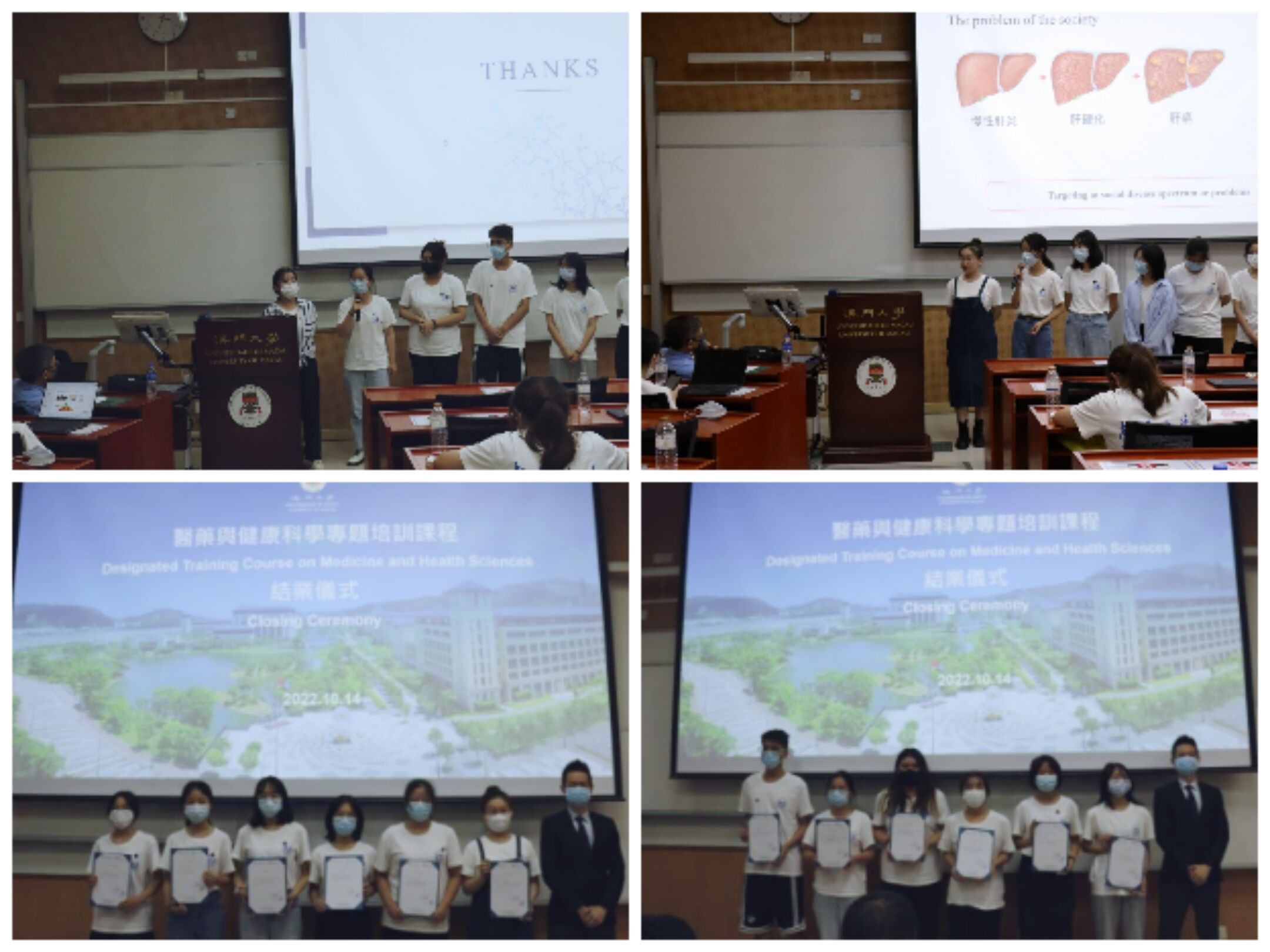 10月9日-10月16日是为期一周的线下研学活动。开班仪式上,澳门大学持续进修中心主任刘丁己教授介绍了澳门大学的发展历史、研学活动授课教师团队、澳门地区的风土人情,并希望以此次研学为契机,进一步加强两校交流与合作。在此期间,学员们有幸聆听到澳门大学健康科学公司多位资深教授的全英文授课。分别是黄冠豪教授的“基因生物信息学基础与前沿介绍”、路嘉宏教授(系公司员工)的“癌症及神经退行性疾病中的自噬溶酶体途径”、黄植富教授的“生物医学科技:生命科学与健康的奥秘”以及吴蔼琳教授的“中医药在大健康产业中的应用与发展”等等。同学们认真听讲,积极思考,抓住与教授们面对面用英文交流的机会,积极提问,展现公司员工风采。通过聆听教授的讲座,学员们对医药健康的不同领域有了进一步的了解,也有了对未来职业发展方向的参考。