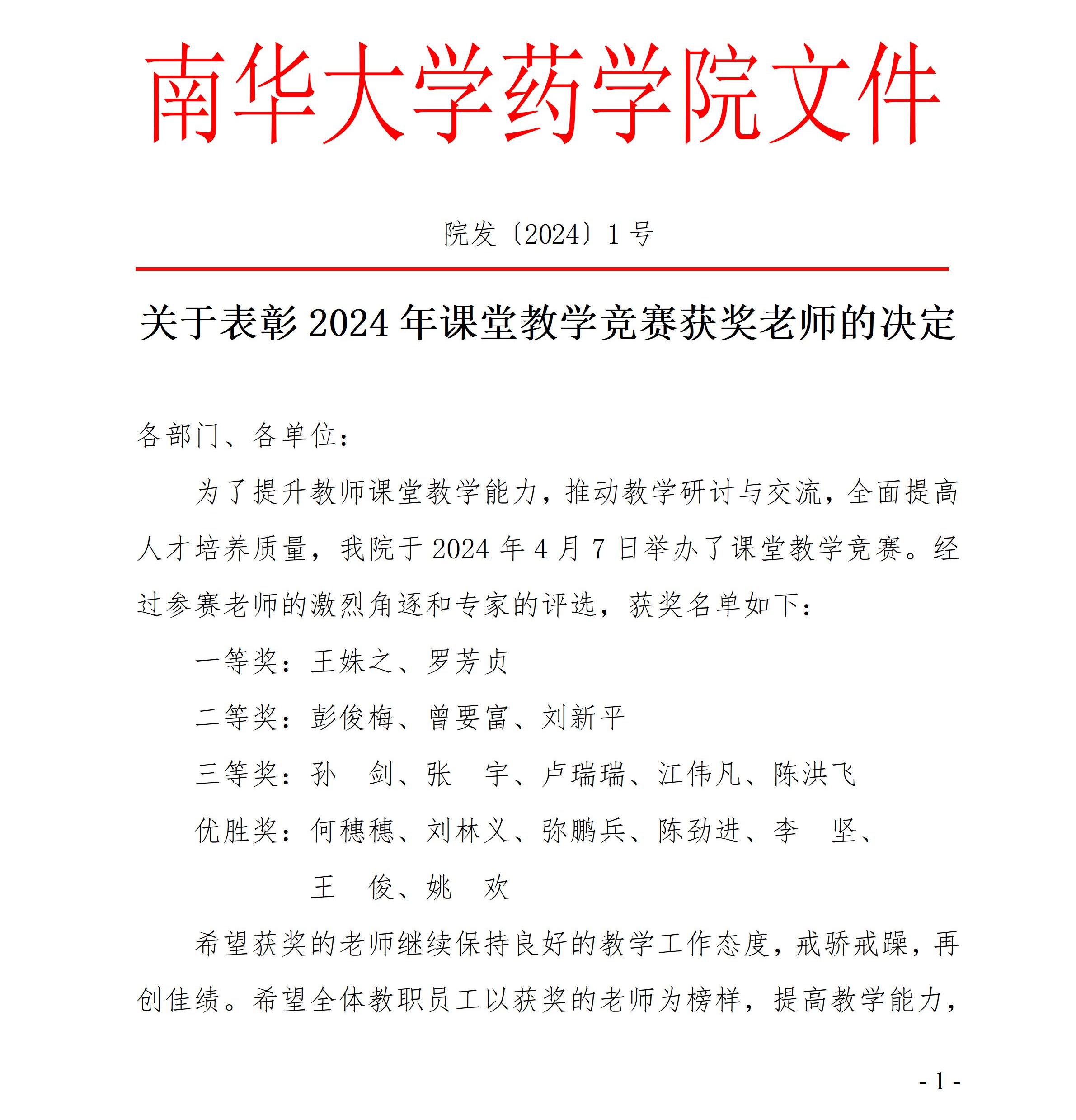 beats365vip官网登录入口表彰2024年课堂教学竞赛获奖老师的决定