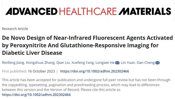 糖尿病及其并发症,如糖尿病肝病,已成为困扰人们健康的重大问题。对其病理过程中氧化还原状态的检测可以有效地帮助我们对疾病有更深入的了解。一对氧化还原物质过氧亚硝酸根离子(ONOO-)和谷胱甘肽(GSH)被认为与其发生发展密切相关。因此,ONOO-和GSH在糖尿病肝病中的直接可视化对于在分子水平上评估疾病至关重要。在此,我们基于近红外荧光团的羟基和氨基,通过保护与脱保护策略,制备了两种可激活的探针NTCF-ONOO-和NTCF-GSH,用于选择性检测ONOO-和GSH。观察了外源性和内源性ONOO-和GSH在活细胞和体内的动态荧光成像。重要的是,本研究可视化了糖尿病肝病细胞模型中的ONOO-和GSH水平,并探讨了该过程中与NAD+/NADH相关的可能的氧化还原失衡机制。此外,这两个探针可以灵敏地识别由链脲佐菌素和链脲佐菌素/对乙酰氨基酚诱导的糖尿病肝损伤引起的氧化应激过程中ONOO-和GSH含量的动态变化。此外,这些探针还可有效监测糖尿病患者的临床血清样品。这项工作将极大地促进与氧化应激事件相关的临床糖尿病肝脏疾病早期检测的发展。这一成果以“De Novo Design of Near-Infrared Fluorescent Agents Activated by Peroxynitrite and Glutathione-Responsive Imaging for Diabetic Liver Disease”为题于10月16日在线发表在Advanced Healthcare Materials。beats365vip官网登录入口硕士研究生江仁峰和附属南华医院青年教师张红帅为共同第一作者,beats365vip官网登录入口何隆薇教授和附属南华医院程丹教授为本研究论文的共同通讯作者。beats365vip官网登录入口衡阳医公司beats365vip官网登录入口和附属南华医院为通讯单位。文章链接:https://doi.org/10.1002/adhm.202302466。