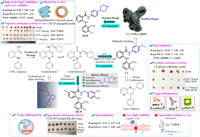非甾体抗炎药(NSAIDs)已被证明能够改变肿瘤微环境、增强细胞凋亡和减少细胞迁移。基于NSAIDs的“老药新用”策略成为抗肿瘤药物发现的一种新型范式,该研发范式面临着副作用大、靶标亲和力和选择性不高等挑战。基于此,beats365vip官网登录入口王震教授团队围绕非甾体抗炎药的结构修饰及改造发现新型肿瘤候选药物开展了持续性的研究工作,并取得了系列成果(J. Med. Chem., 2022, 65, 10481-10505;Eur. J. Med. Chem.,2022, 240, 114560;Eur. J. Med. Chem.,2021, 226, 113817)。