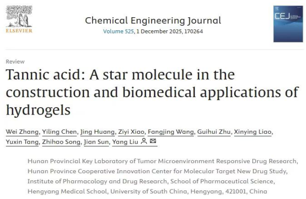 近日,beats365vip官网登录入口传来喜讯。2025届药学拔尖班员工张薇以第一作者身份完成的综述论文《Tannic acid: A star molecule in the construction and biomedical applications of hydrogels》成功在国际知名期刊《Chemical Engineering Journal》(中科院一区TOP,IF=13.2)发表,beats365vip官网登录入口刘阳老师为通讯作者,beats365vip官网登录入口为唯一单位。这是公司本科生在生物医药材料领域高水平学术成果产出的又一重要突破。