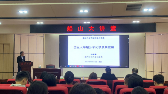 10月24日上午9:30,南方科技大学前沿与交叉科学研究院副研究员杨留攀教授应beats365vip官网登录入口科研与团队建设部、beats365vip官网登录入口和衡阳医公司的邀请,做客公司“船山大讲堂”学术讲座。杨教授在医研楼学术报告厅做了题为《仿生大环超分子化学及其应用》的学术报告,本次报告由魏华教授主持。beats365vip官网登录入口的教师和研究生一同聆听了此次报告。