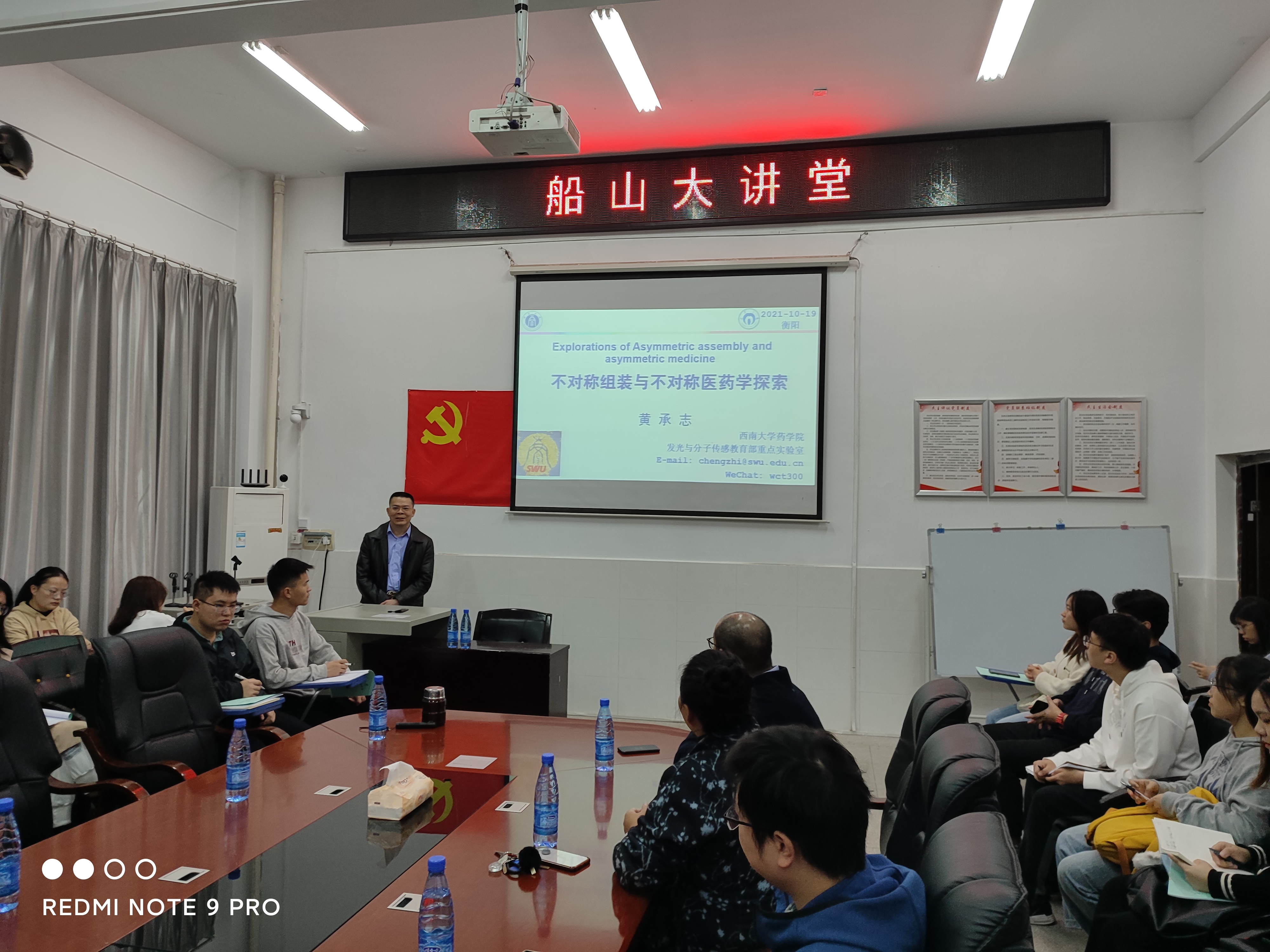 10月19日上午9点,西南大学beats365vip官网登录入口黄承志教授应beats365vip官网登录入口科研与团队建设部和beats365vip官网登录入口的邀请,做客公司“船山大讲堂”学术讲座。黄承志教授在新二教B101会议室做了题为《不对称组装与不对称医学探索》的报告,报告由魏华教授主持。beats365vip官网登录入口的教师和研究生一同聆听了此次报告。