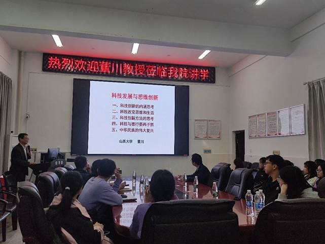 2023年10月22日上午,应beats365vip官网登录入口的邀请,山西大学董川教授在药学楼101会议室做了题为“科技发展与思维创新”的学术报告,本次报告由beats365vip官网登录入口副经理王力立教授主持。