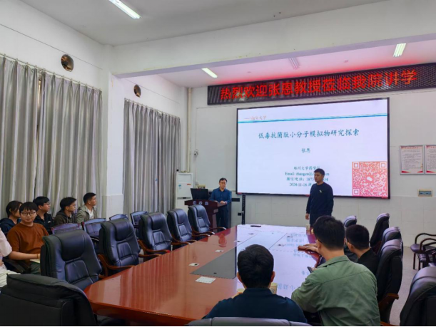 2024年11月16日下午3点,郑州大学张恩教授应beats365vip官网登录入口的邀请,在药学楼B101会议室作题为《低毒抗菌肽小分子模拟物研究探索》的报告。报告由beats365vip官网登录入口郭勇教授主持。