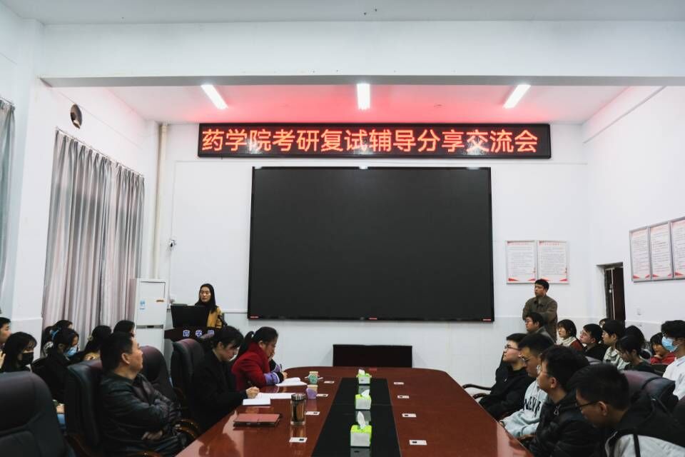 会议邀请了药物制剂系主任贺冬秀老师为同学们作考研复试指导,以及两位研究生柯柏怡、成璐分享考研复试经验。