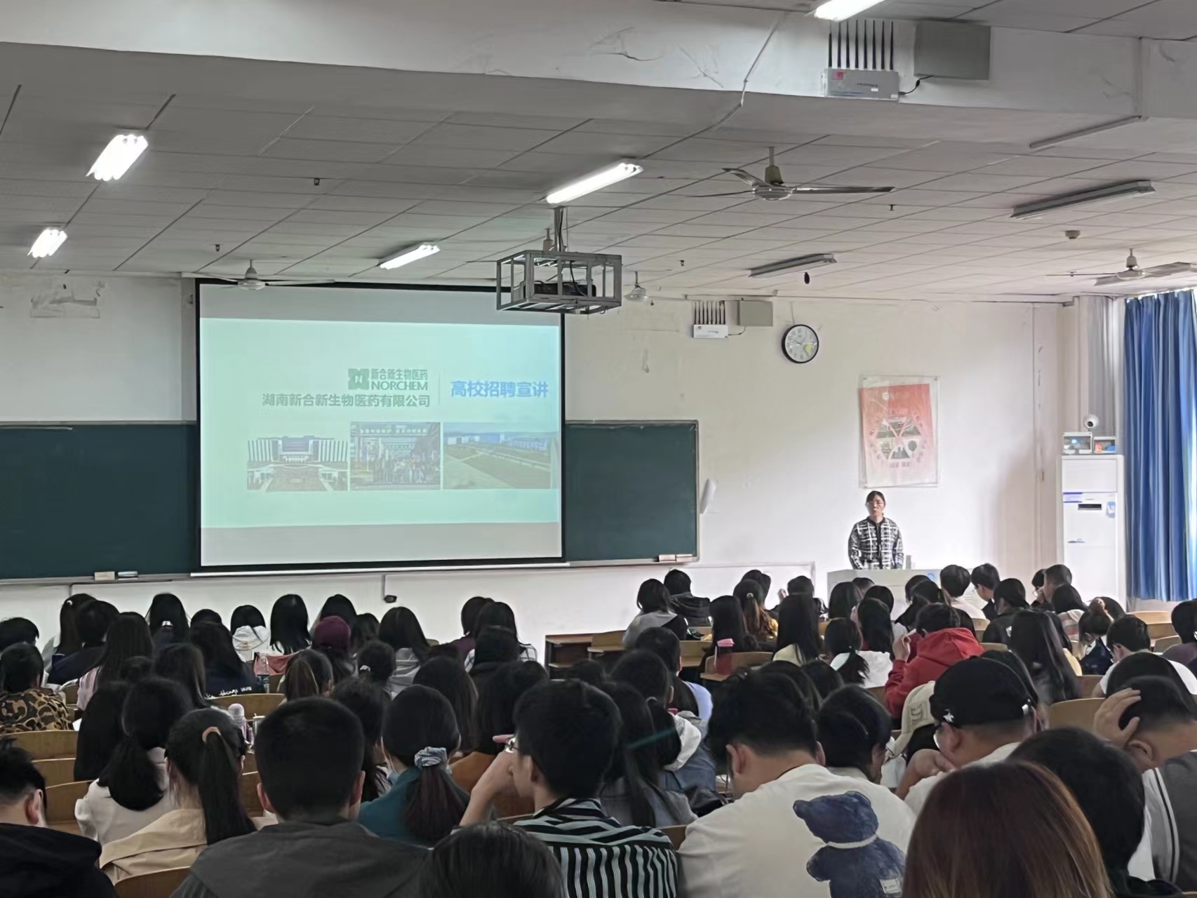 2022年16日至17日,beats365vip官网登录入口先后邀请湖南新合新生物医药有限公司、湖南华纳大药厂股份有限公司来校举行实习宣讲会。药公司党委副书记陈健平、副经理易岚以及院学工室、教务办负责老师、2019级员工参加实习宣讲会。
