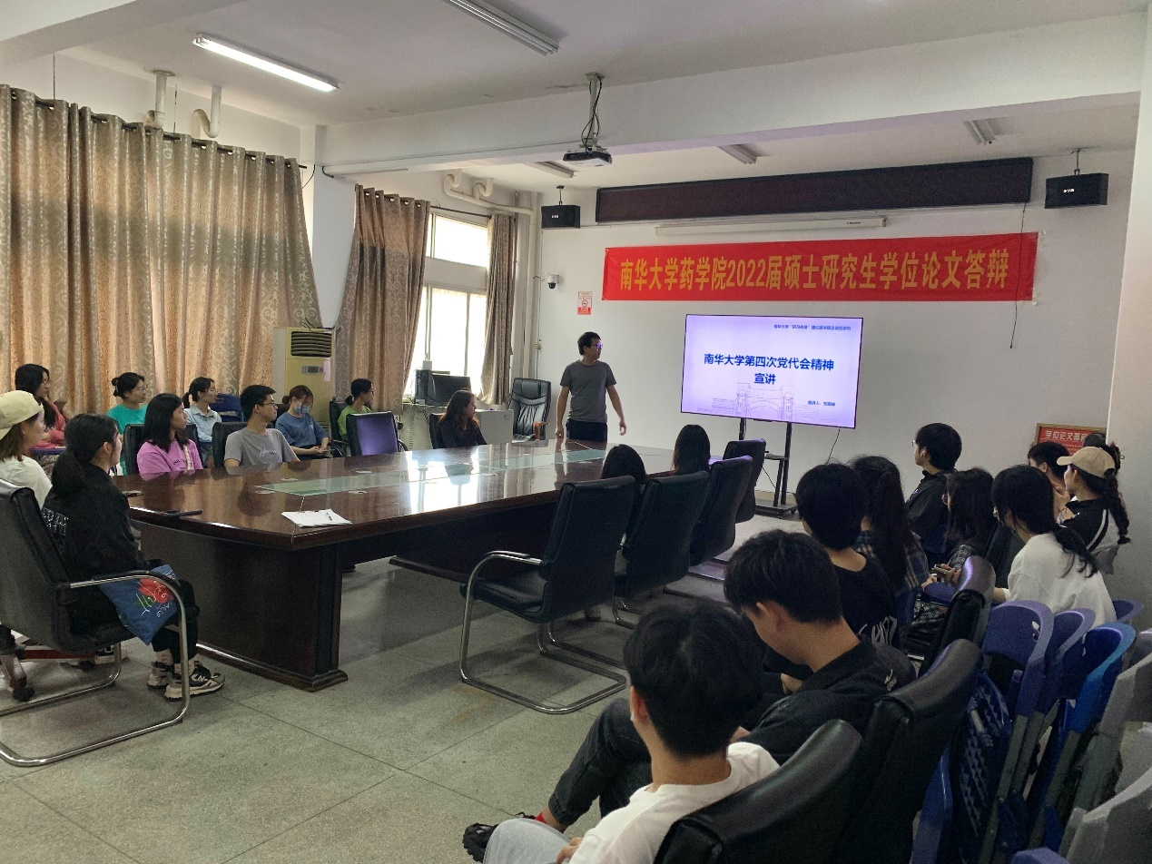 2022年5月26日中午,beats365vip官网登录入口邀请“研习先锋”宣讲团成员刘翠峰同志在药学楼党员活动室B411开展题为“beats365vip官网登录入口第四次党代会精神宣讲”的主题宣讲。公司全体研究生参加宣讲会。