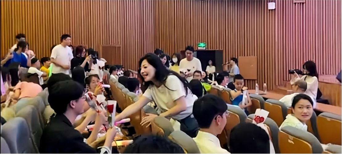 2023届365位毕业生中,涌现出一批员工典型:有互相鼓励、共同上岸的“学霸情侣”,有齐心协力、结伴考研全寝上岸“学霸宿舍”……在主持人的邀请下,他们欣然上台,与现场观众亲切互动,也纷纷收到了来自学弟学妹们的热烈祝福。