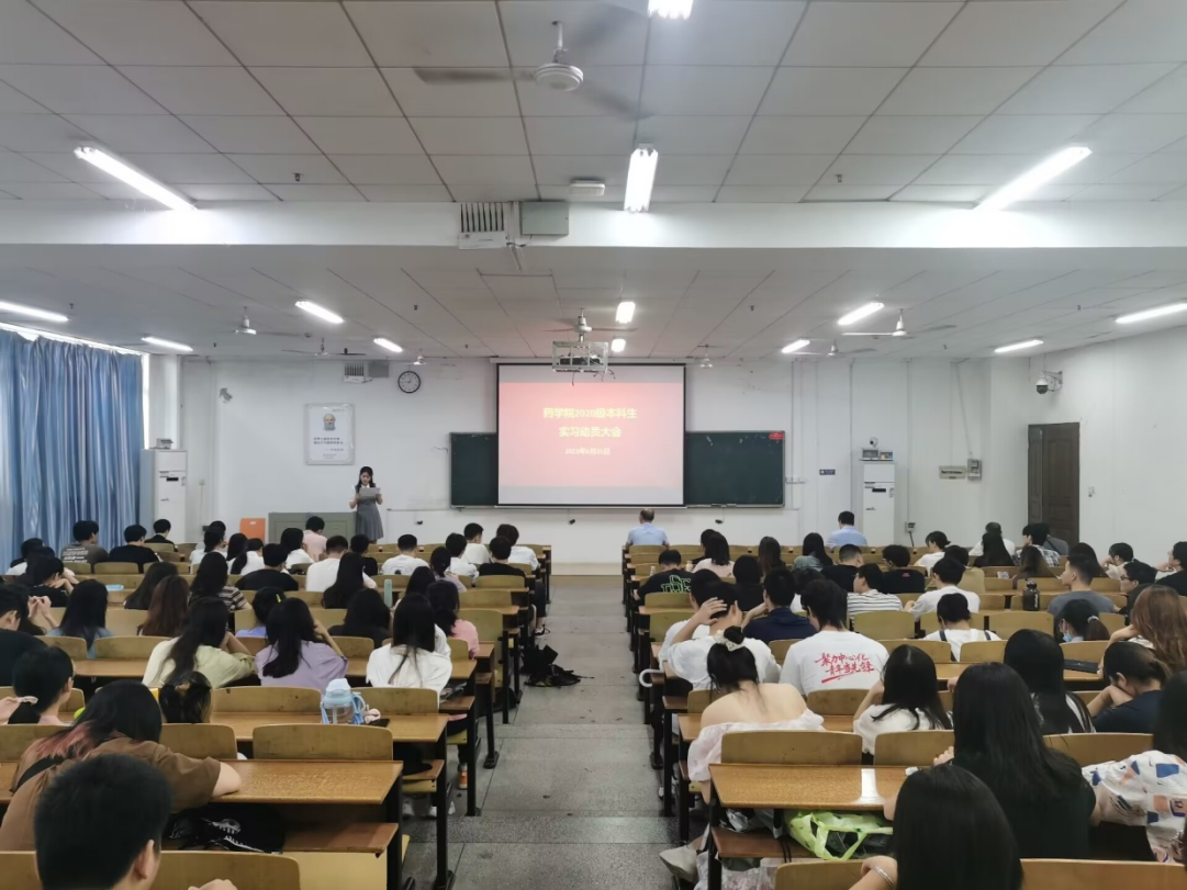 6月25日上午,beats365vip官网登录入口在南华楼111教室举行2020级药学专业生产实习动员会。公司党委书记袁中华、副经理易岚以及教务办、各教研室教师代表,2020级药学专业员工参加此次会议。会议由2020级年级辅导员彭翔主持。