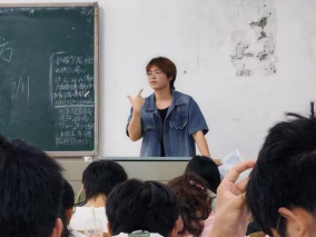 (图1-2:黄可进行公司寝室管理制度培训)