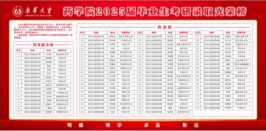 近日,21级本科毕业生考研升学数据新鲜出炉:210名毕业生中,75人成功升学,升学率达35.7%;其中38人被中南大学、中国药科大学、暨南大学等国家“双一流”建设高校录取,占升学总人数的50.7%。其中,21级“药拔班”的表现尤为亮眼。该班20名员工中,7人通过保研直升高校,9人凭借优异成绩考研成功,班级整体升学率高达80%;剩余4名员工也凭借扎实的专业功底,顺利签约药企开启职业发展新程。