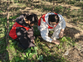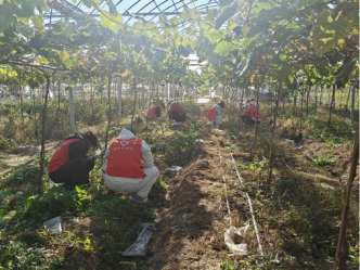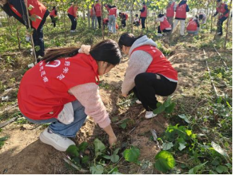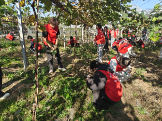 在基地技术人员的指导下,志愿者们走进葡萄园,参与田间劳作,学习葡萄种植与管理技能。大家围在技术人员身边认真记录要点,随后分组行动:有的蹲在垄沟仔细轻翻土壤,有的弯腰清除多余杂草,有的提着水桶为葡萄苗浇水。尽管汗水浸透了衣衫,志愿者们依旧热情高涨,在亲手耕耘中体会“一粥一饭当思来之不易”的深意,也更直观地理解乡村振兴的现实需求。