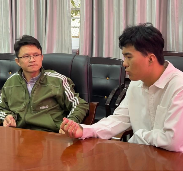(唐先元与同学们交流)