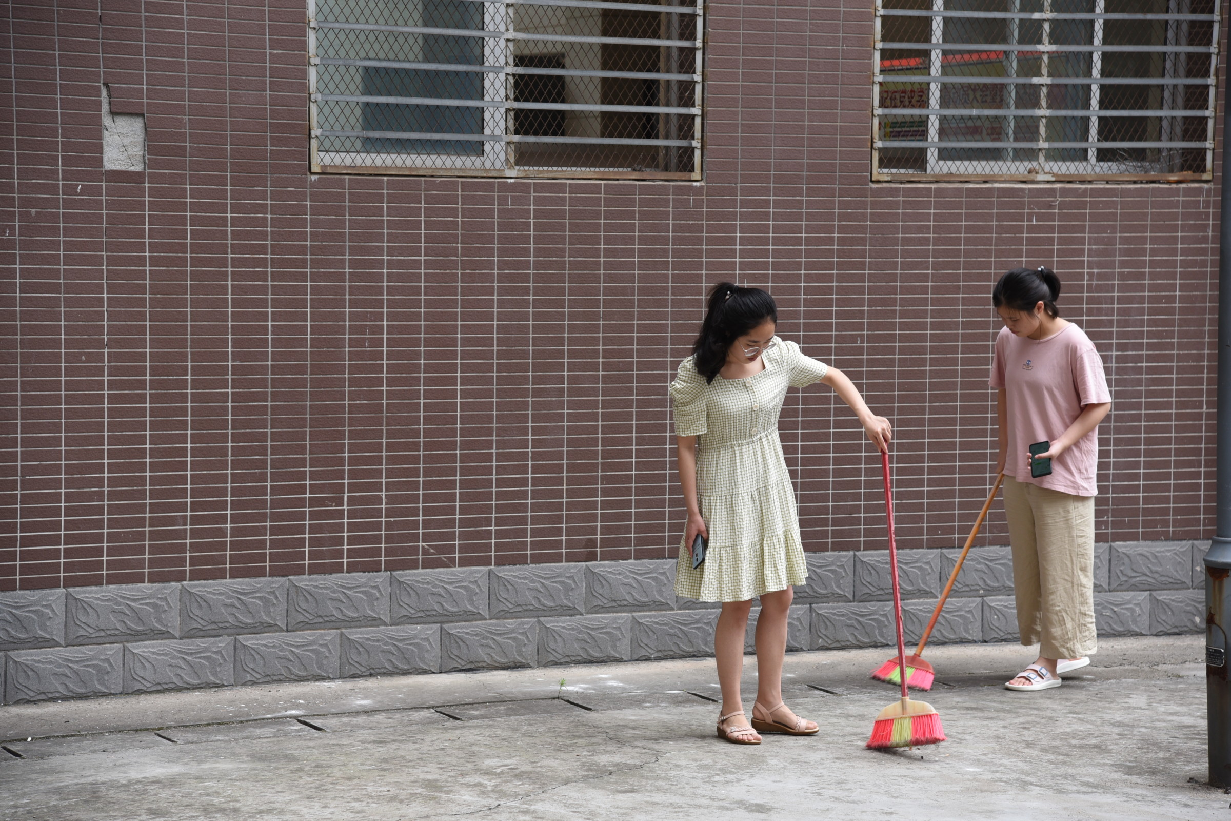 活动当日,各位入党积极分子准备好了扫帚、清洁铲刀等卫生工具,在下午3点于新二教内集合后纷纷开始了打扫。