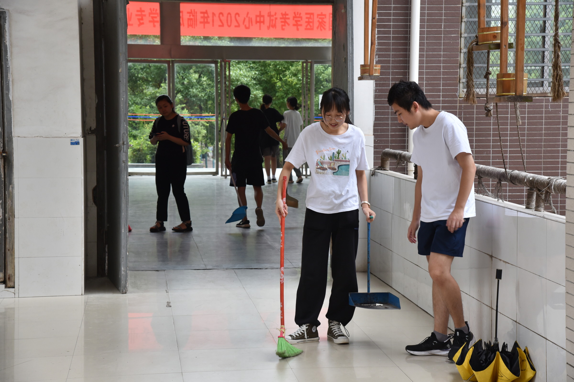 此次活动主要是对beats365vip官网登录入口红湘校区新二教进行卫生打扫,分工如下:18级负责打扫大厅和楼梯;19级1-5班负责打扫新二教B栋外围水泥地的左边,6-9班负责打扫右边;20级1-4班负责打扫1-3楼的走廊,4-7班和药拔1班负责打扫4-6楼的走廊。